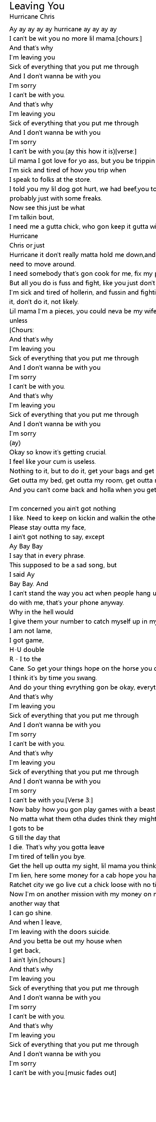 I can't be wit you no more lil mama.[chours:] |