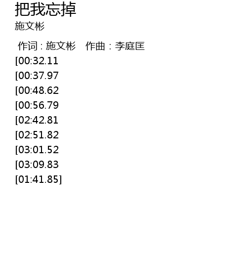 | [03:44.84][03:09.83][01:32.68] | 请你勿伤心爱认真来把我忘掉 |