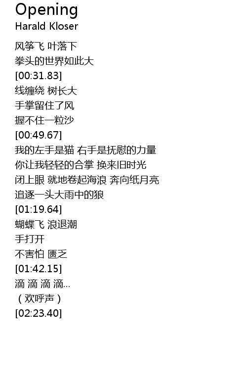 | [00:50.96] | wǒ de zuǒ shǒu shì māo yòu shǒu shì fǔ wèi de lì liàng |