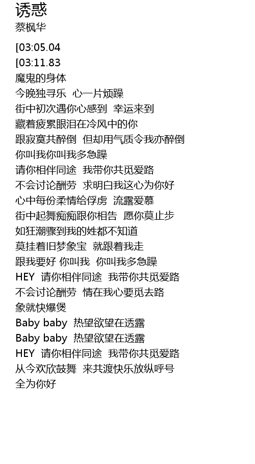 | [02:41.38] | Baby baby 热望欲望在透露 |