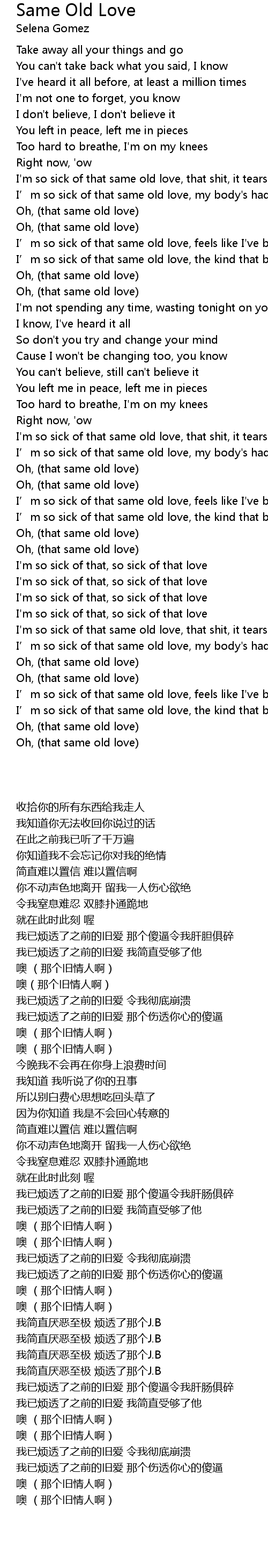| [00:49.190] | I'm so sick of that same old love, that shit, it tears me up |