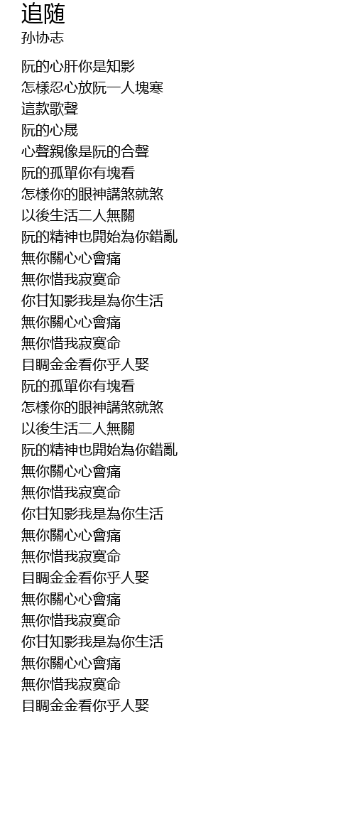 | [03:17.00] | 你甘知影我是為你生活 |