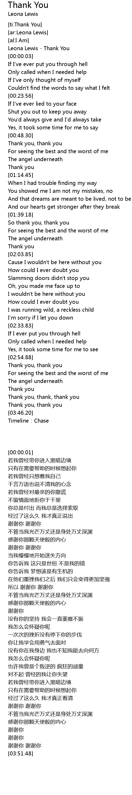 | [00:00.01] | Leona Lewis - Thank You |