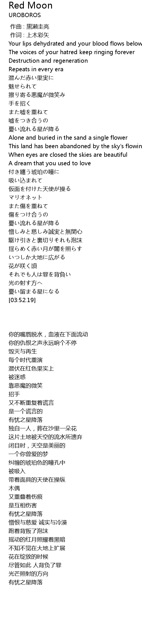 | [03:20.11] | 揺らめく赤い月が闇を照らす |