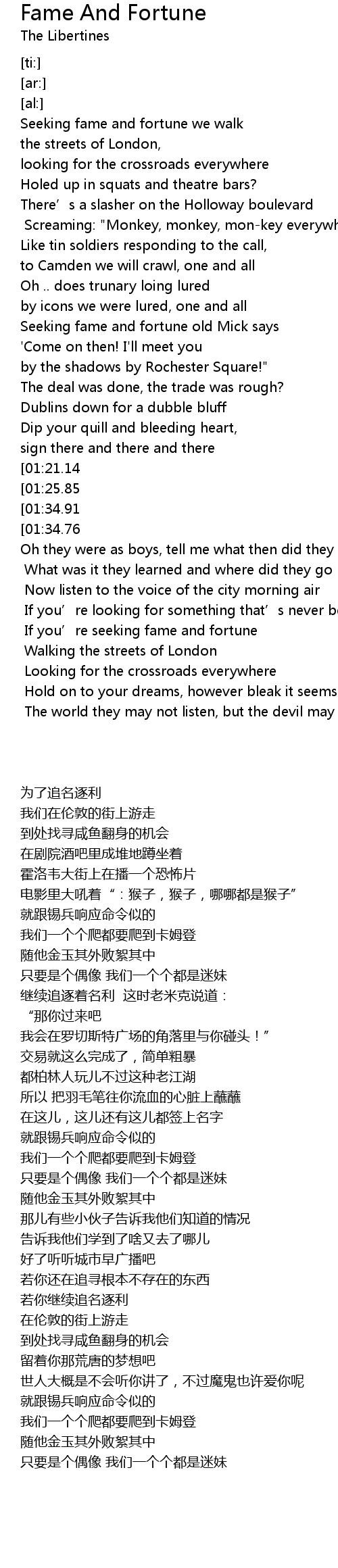 | [01:03.77] | Seeking fame and fortune old Mick says |