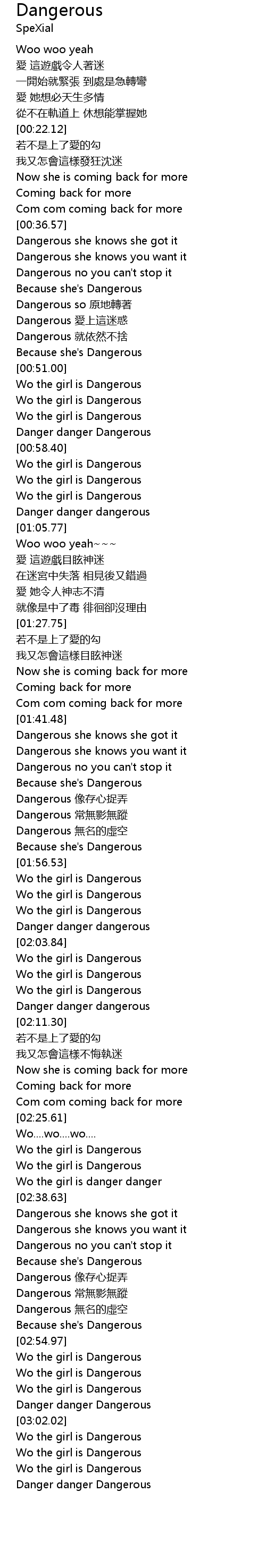 | [03:00.71] | Danger danger Dangerous |