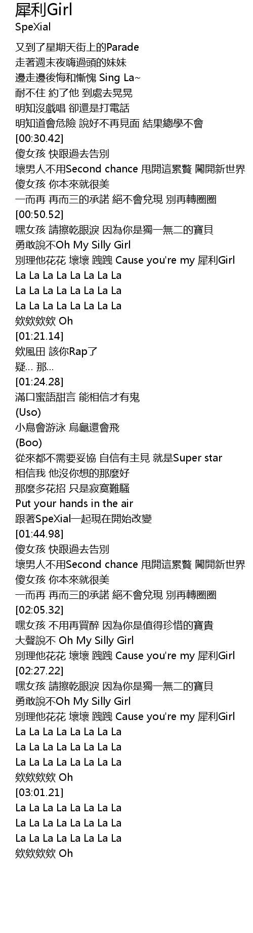 | [02:40.07] | 勇敢說不Oh My Silly Girl |