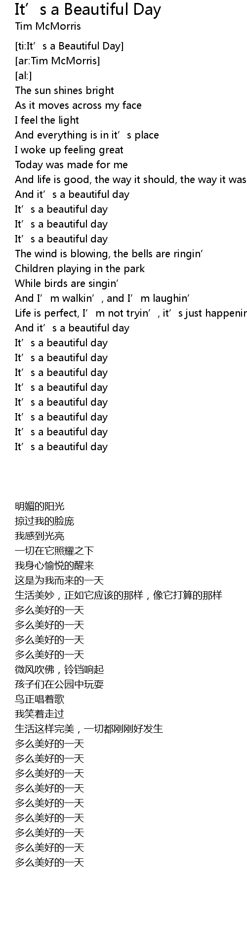 | [00:45.76] | It' s a beautiful day |