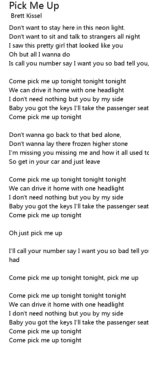Come pick me up tonight tonight, pick me up