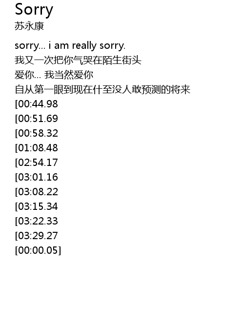 | [04:04.41][03:22.33][01:42.33] | wo de ai ren qing ting wo you ke bu shan yan yu de xin |