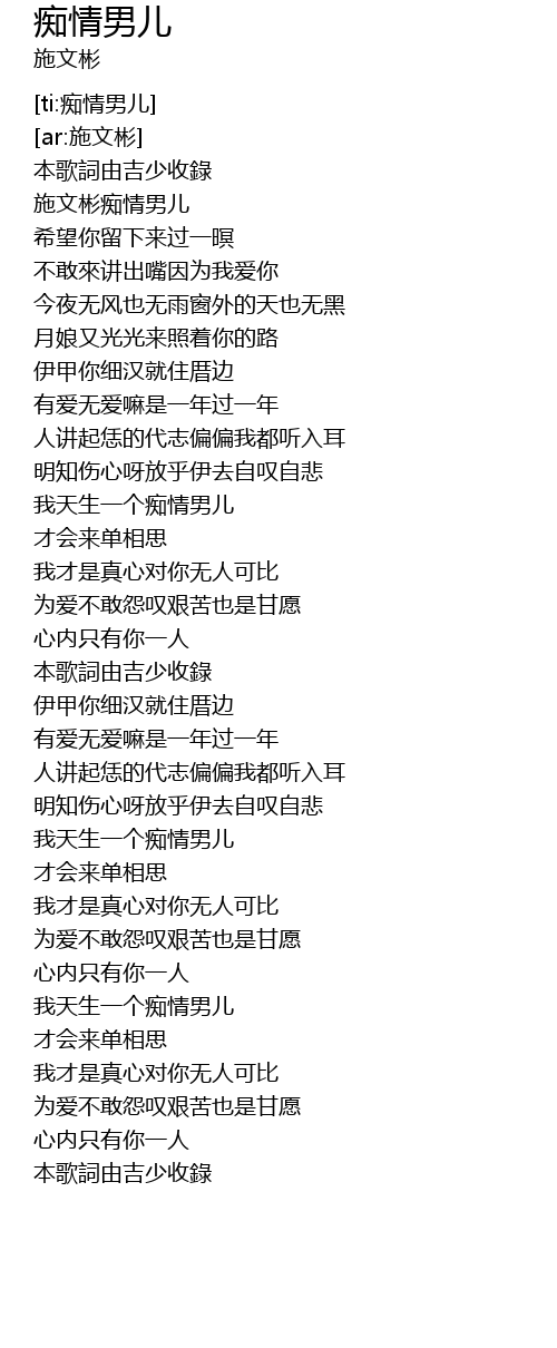 | [00:17.150] | 施文彬痴情男儿 |