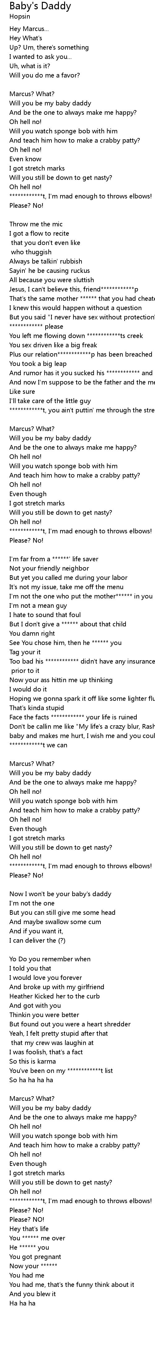 | And rumor has it you sucked his ************ and kissed me | |