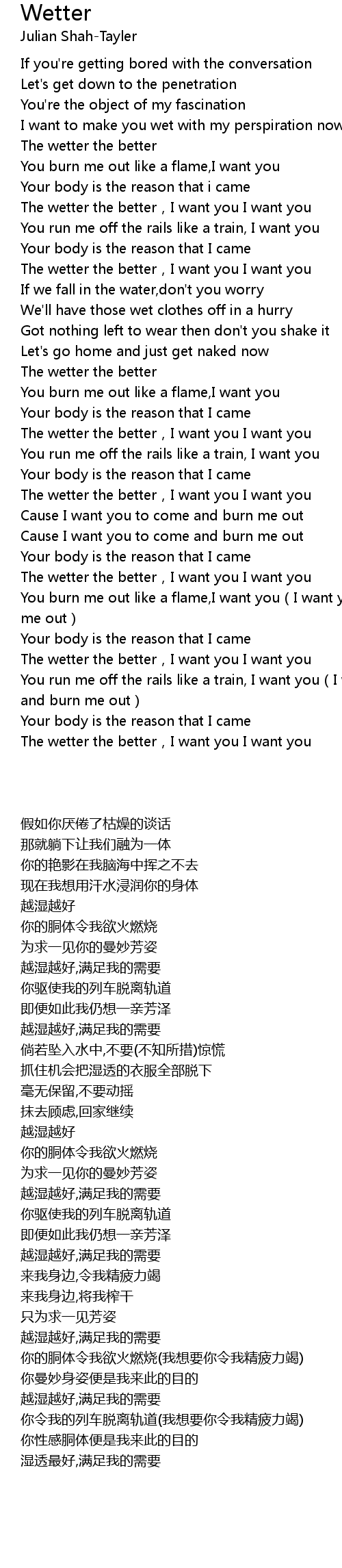 | [00:50:00] | The wetter the better,I want you I want you |