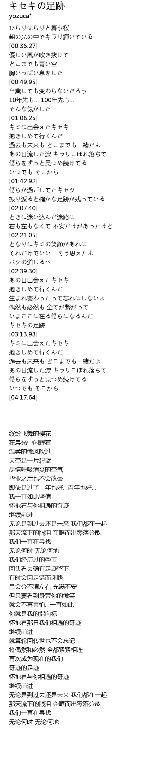 | [03:06.53] | キセキの足跡 |