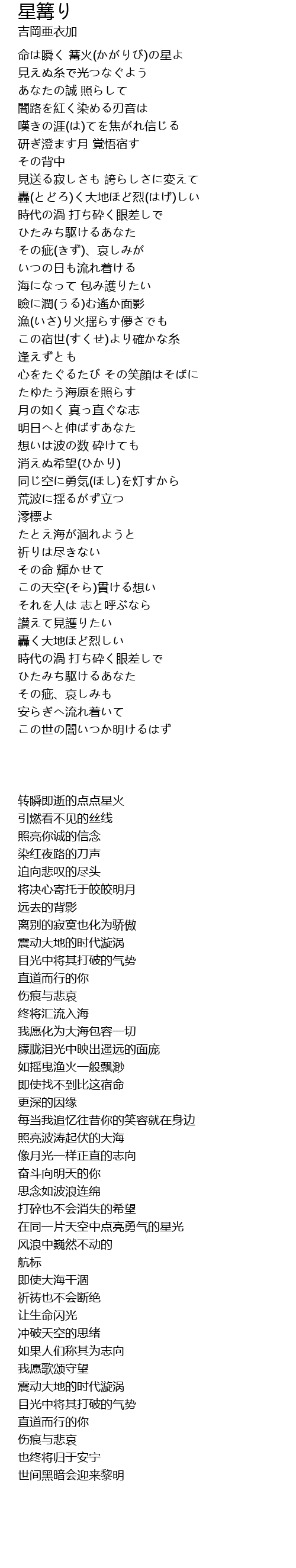 | [0:00.310] | 命は瞬く 篝火(かがりび)の星よ |