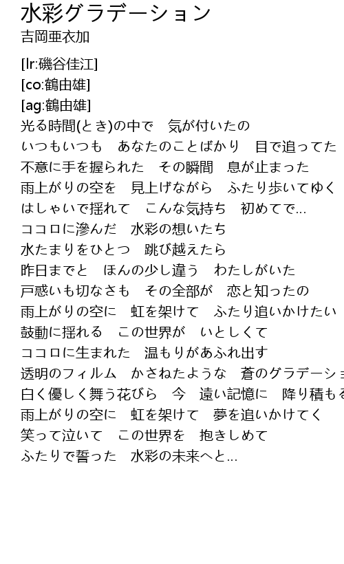 | [03:37.27] | ふたりで誓った 水彩の未来へと… |
