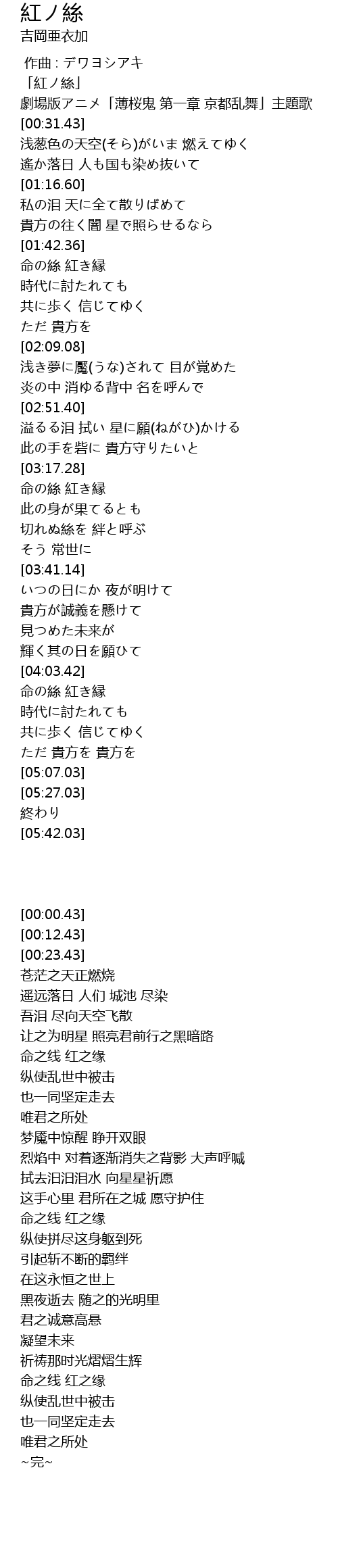| [00:00.43] | 「紅ノ絲」 |