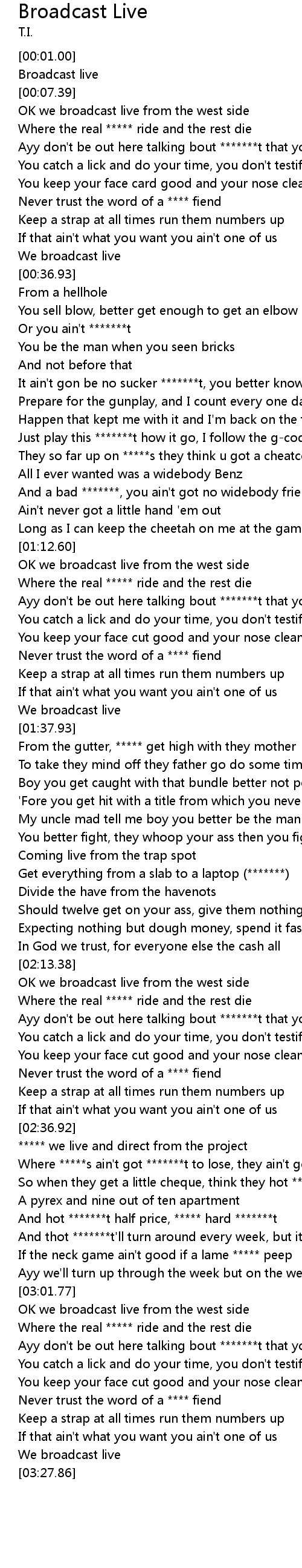 | [03:04.21] | Where the real ***** ride and the rest die |