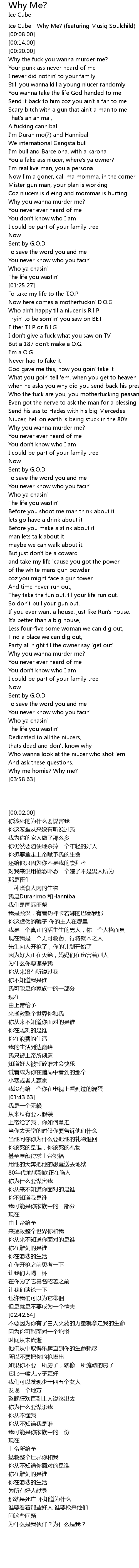 [00:02.00] Ice Cube - Why Me? (featuring Musiq Soulchild)