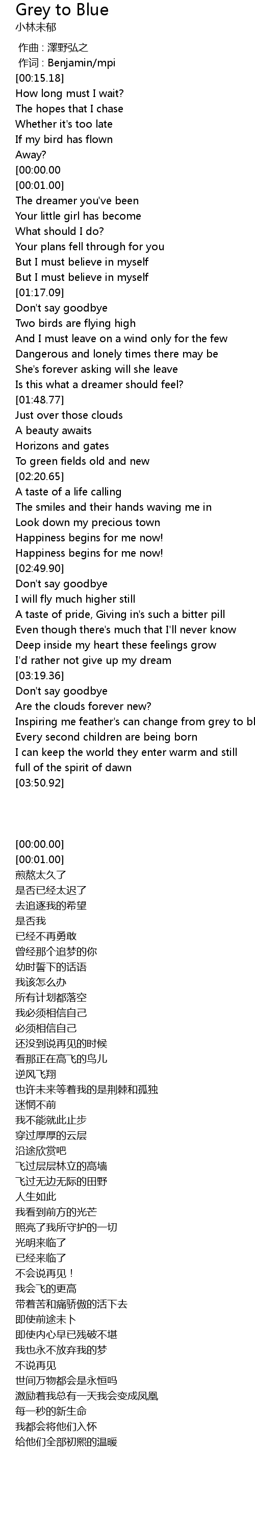| [03:27.25] | Inspiring me feather's can change from grey to blue |