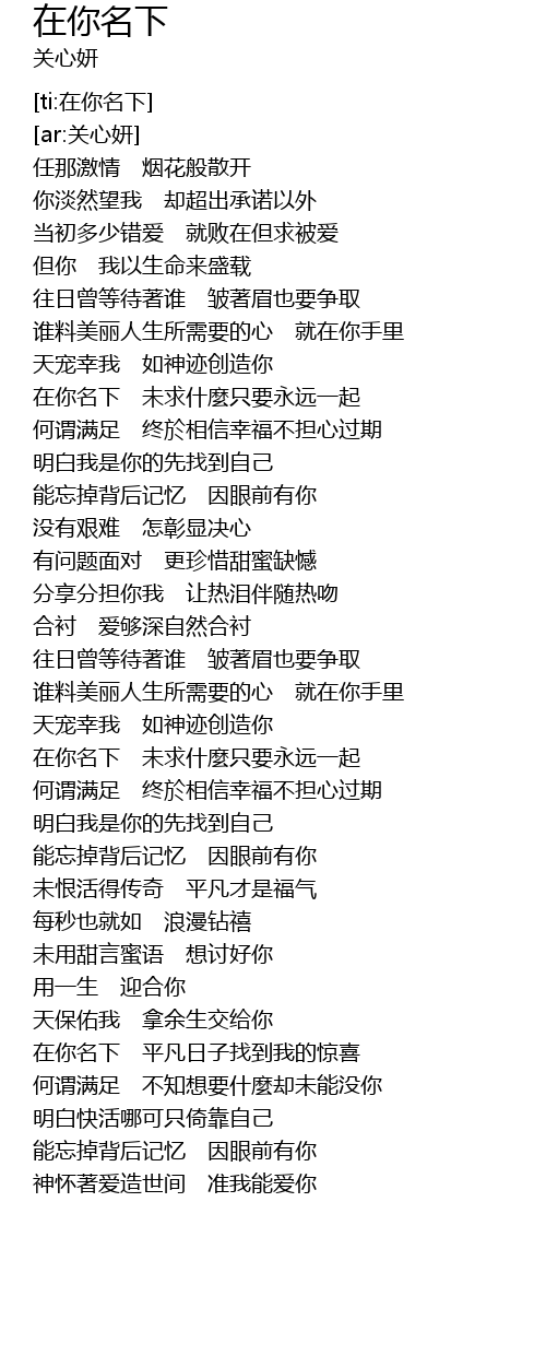 | [ti:在你名下] | |