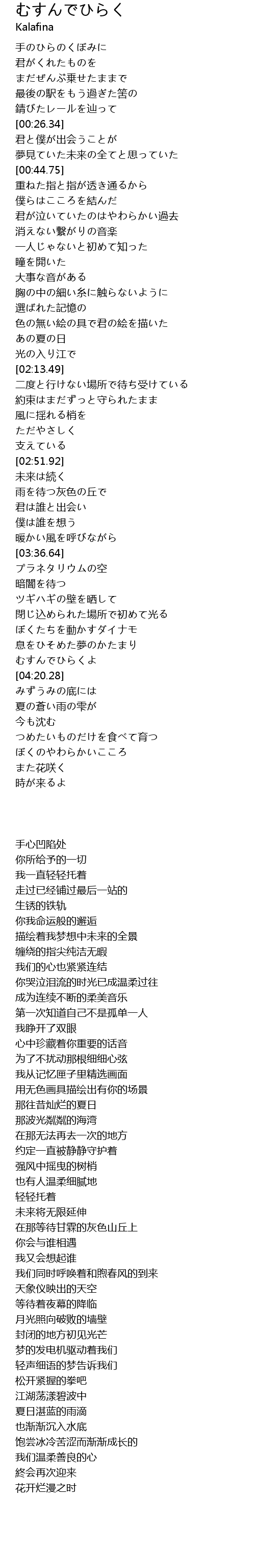 | [00:59.49] | 君が泣いていたのはやわらかい過去 |