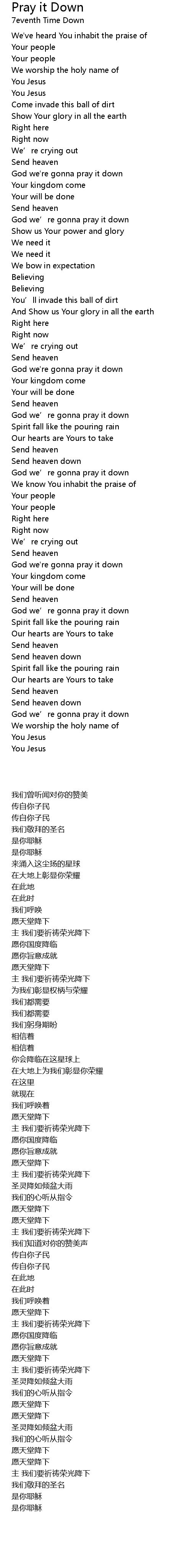 | [01:29.63] | God we' re gonna pray it down |