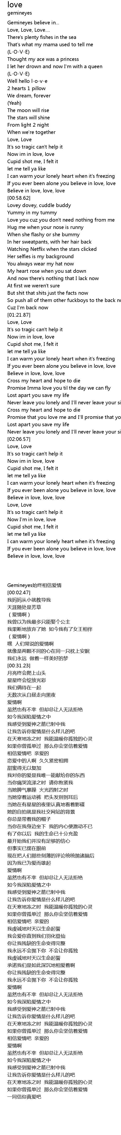 | [00:01.91] | Gemineyes believe in... |
