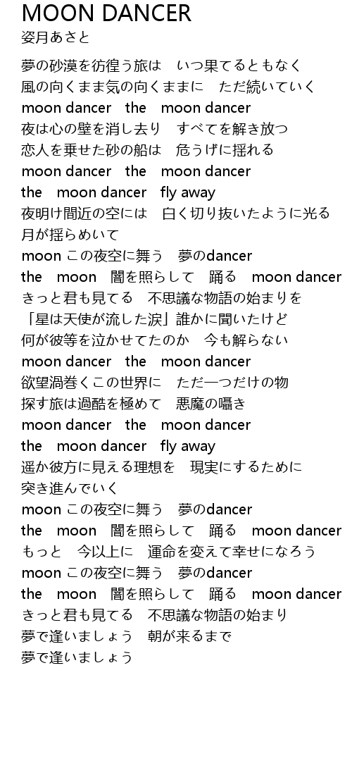 | [01:45.44] | moon この夜空に舞う 夢のdancer |