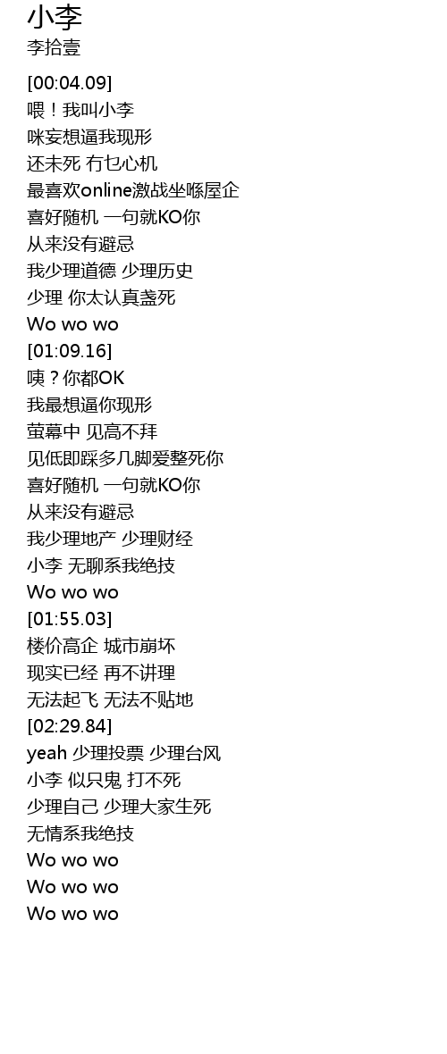 | [02:52.57] | 小李 似只鬼 打不死 |