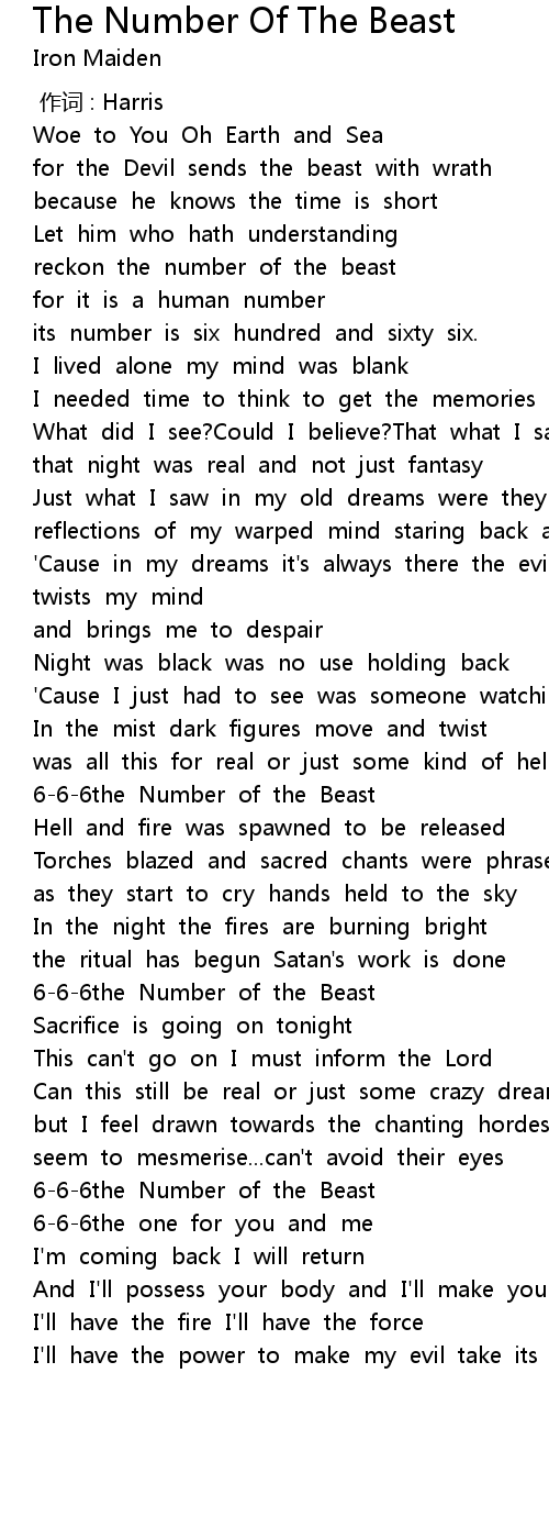 | [02:19.417] | 6-6-6the Number of the Beast |