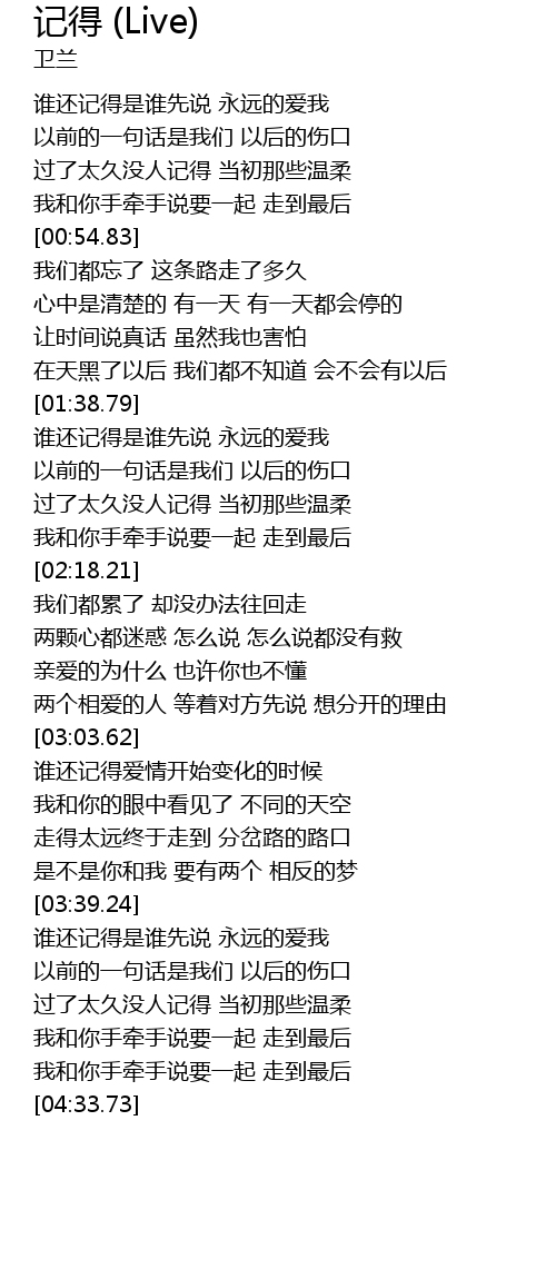 | [03:41.13] | 谁还记得是谁先说 永远的爱我 |