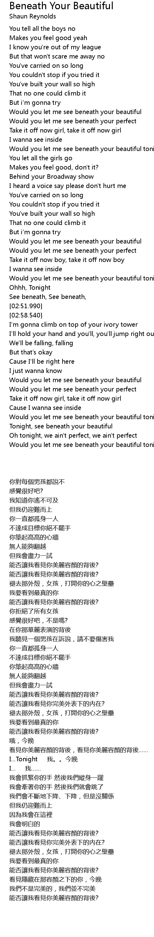 Would you let me see beneath your beautiful |