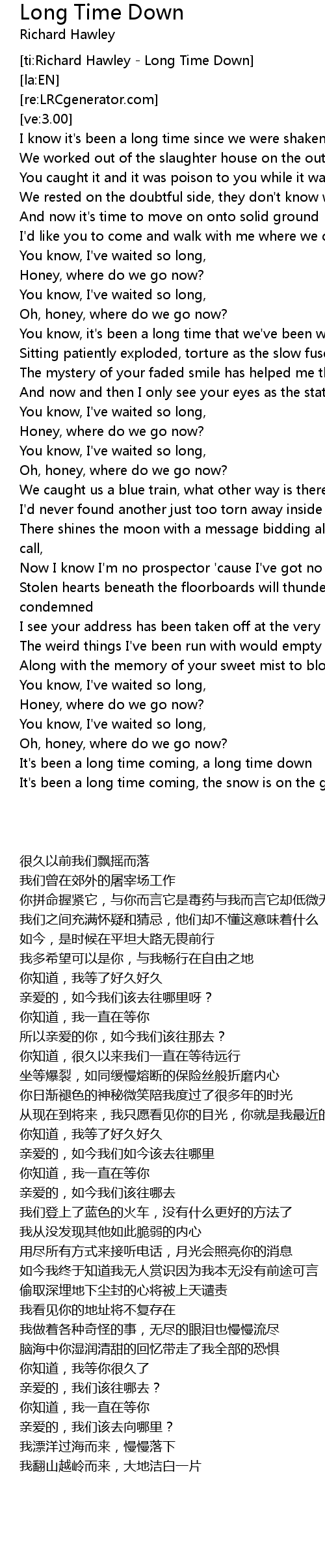 [ti:Richard Hawley - Long Time Down] |
