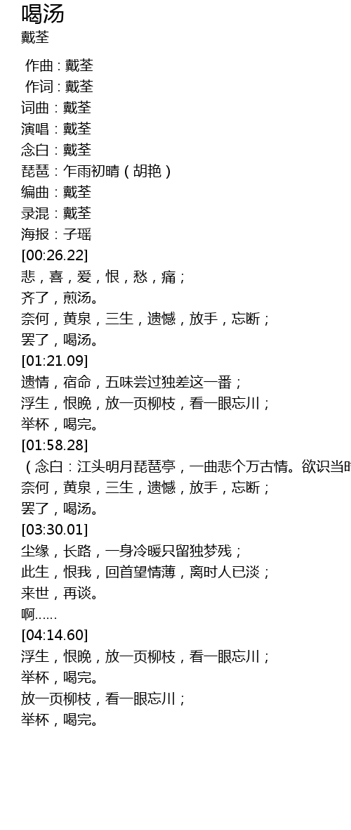 | [03:02.87] | 奈何,黄泉,三生,遗憾,放手,忘断; |