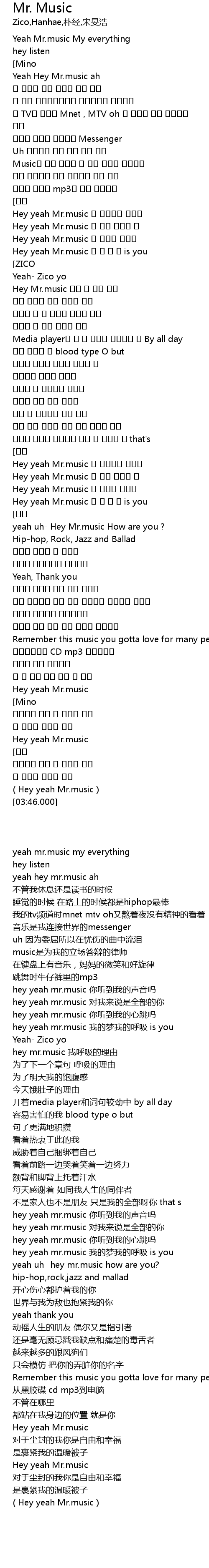 | [00:09.440] | Yeah Mr. music My everything |