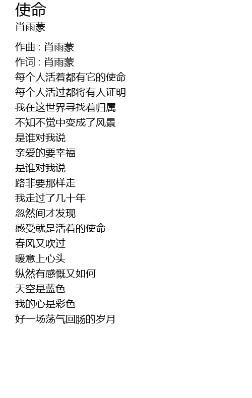 | 作词 : 肖雨蒙 | |
