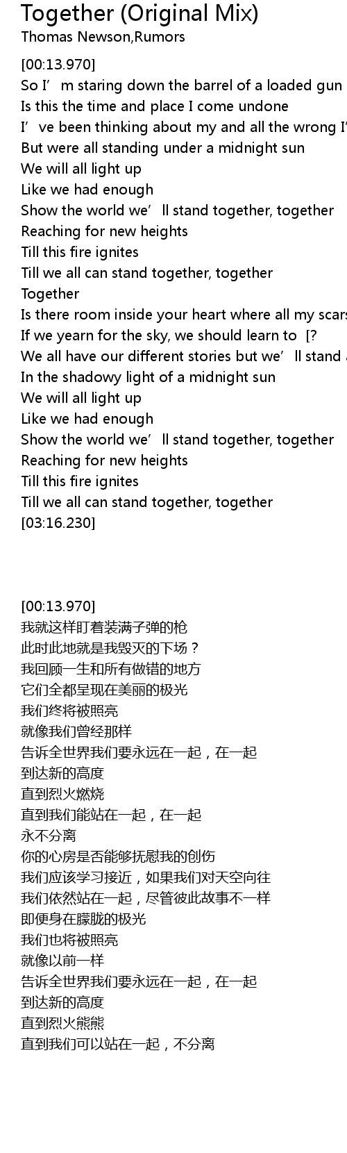 | [02:31.810] | We all have our different stories but we’ll stand as one |
