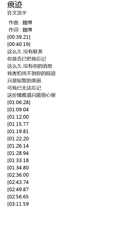 | [00:51.34] | 我害怕找不到你的踪迹 |