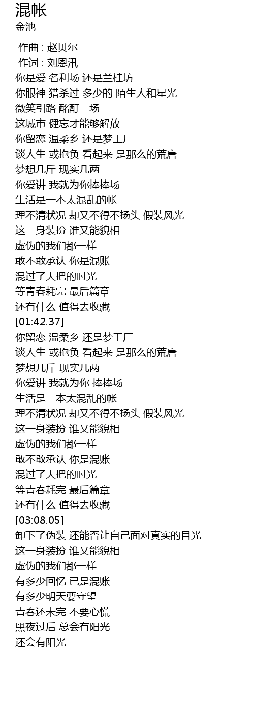 | [02:32.67] | shēng huó shì yī běn tài hùn luàn de zhàng |