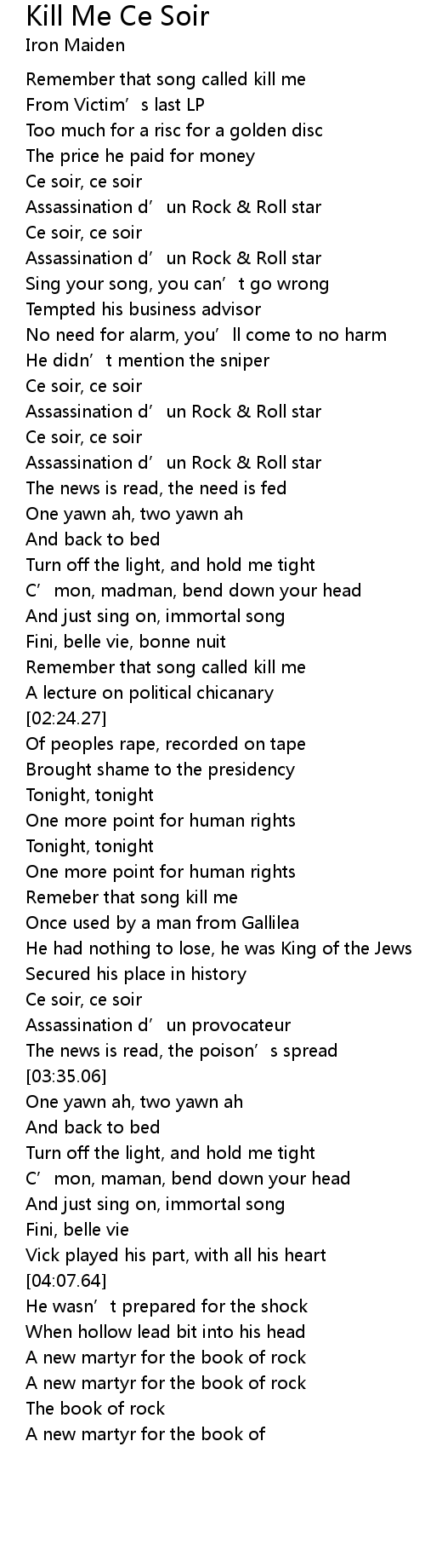 | [02:07.00] | Remember that song called kill me |