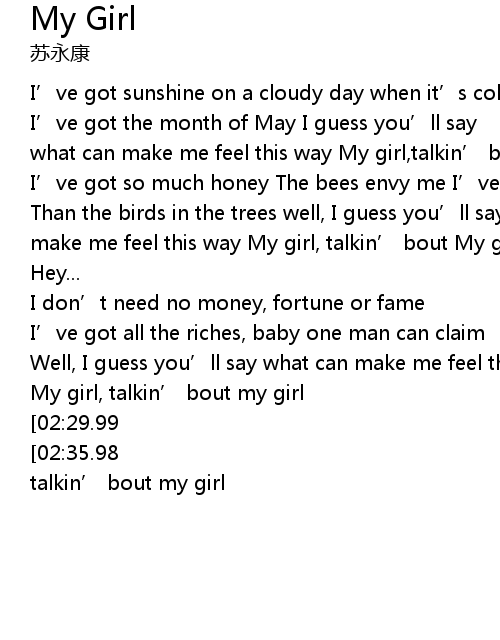 | [02:20.09] | My girl, talkin' bout my girl |