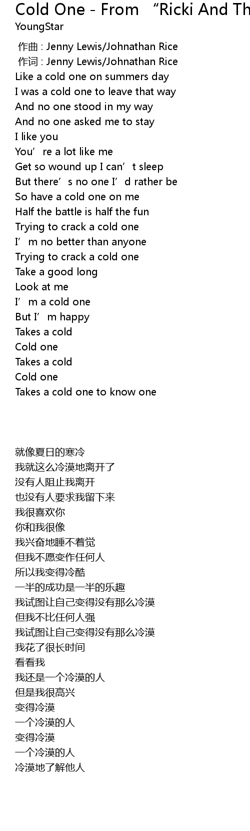 | [02:30.910] | Cold one |