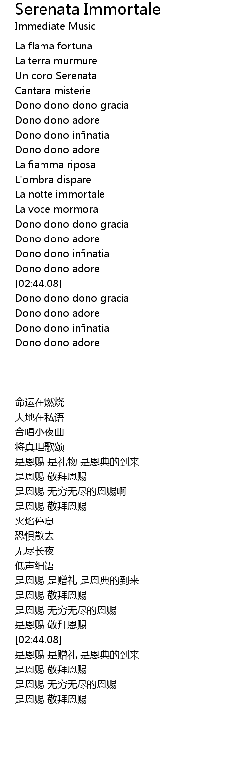 Serenata Immortale Lyrics