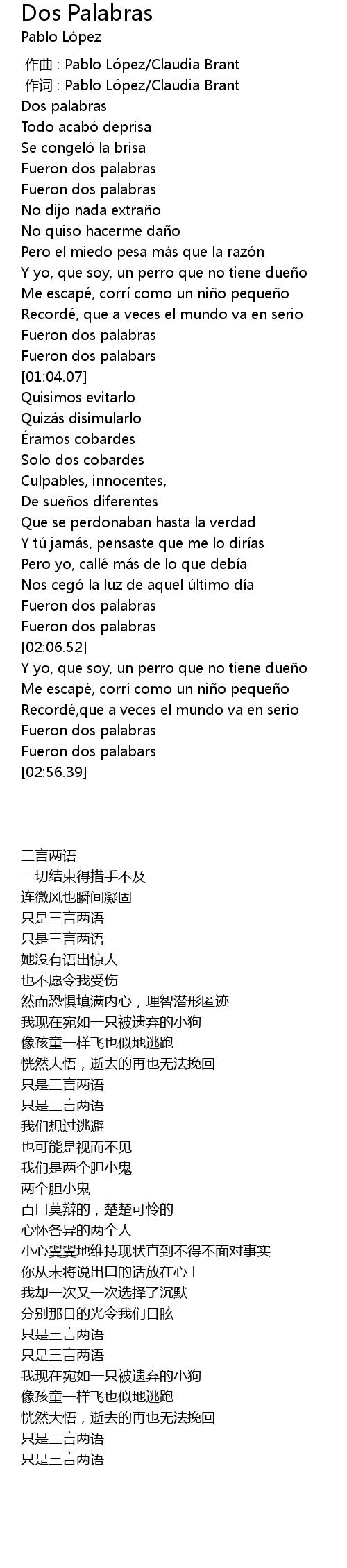 | [00:00.00] | 作曲 : Pablo López/Claudia Brant |