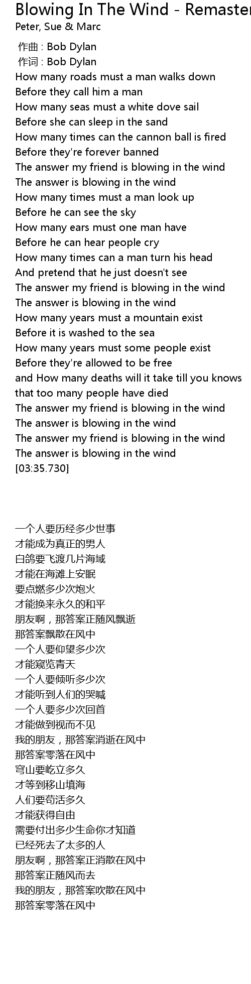 | [03:21.950] | The answer my friend is blowing in the wind |