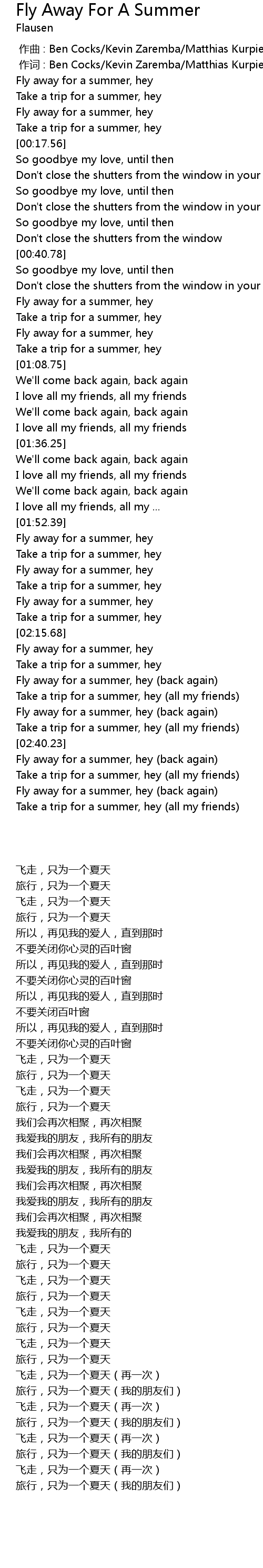 | [02:33.53] | Fly away for a summer, hey (back again) |