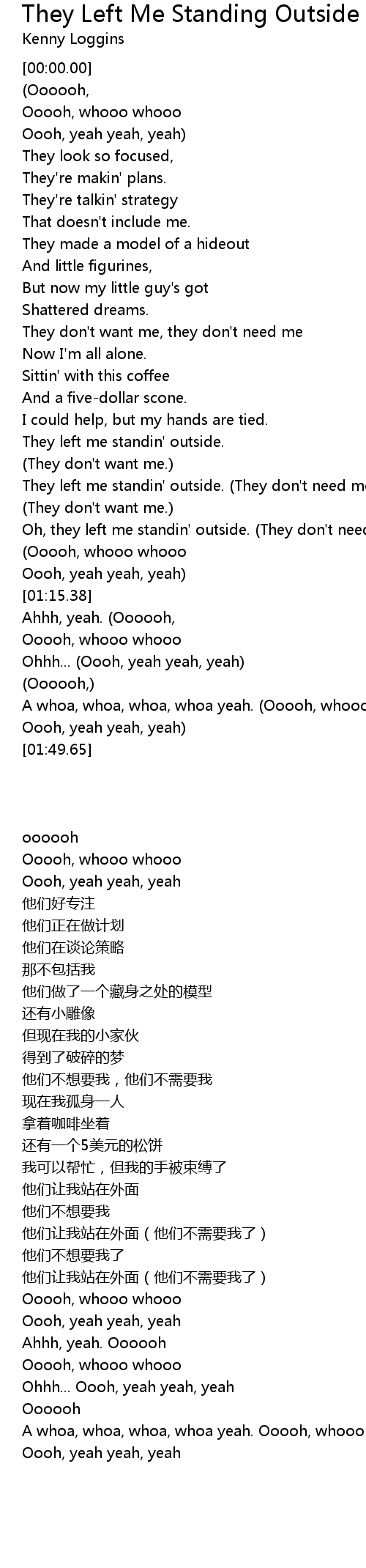 Oh, they left me standin' outside. (They don't need me.) |
