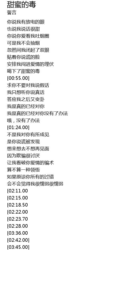 | [00:51.00] | 喝下了甜蜜的毒 |