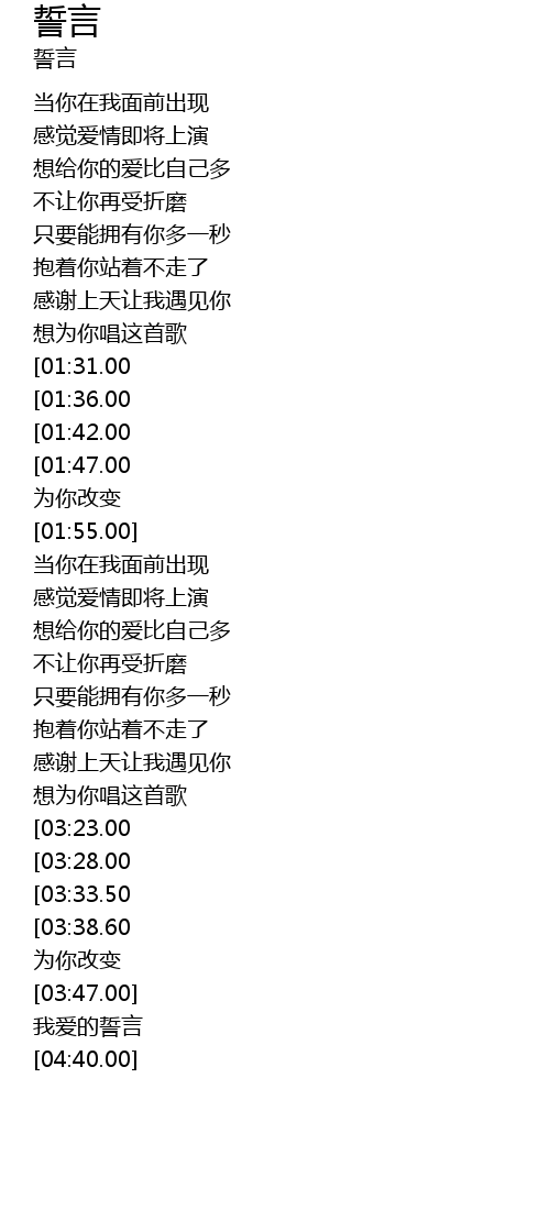 [04:12.00][03:23.00][03:01.50] 我的誓言我的想念